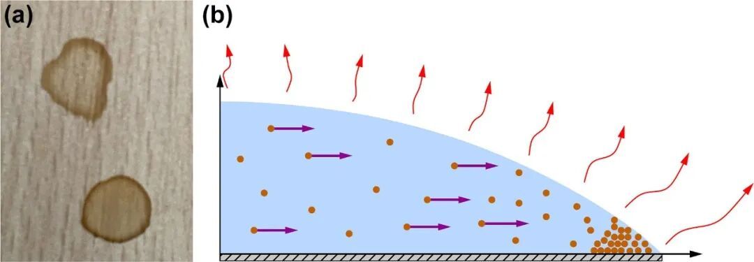 悬浮在液滴里的颗粒、色素和其他溶质会被这股流带向外围,临了在旯旮千里积下来。等液滴皆备干燥后,就形成了中间较淡、外圈较深的典型环形陈迹。