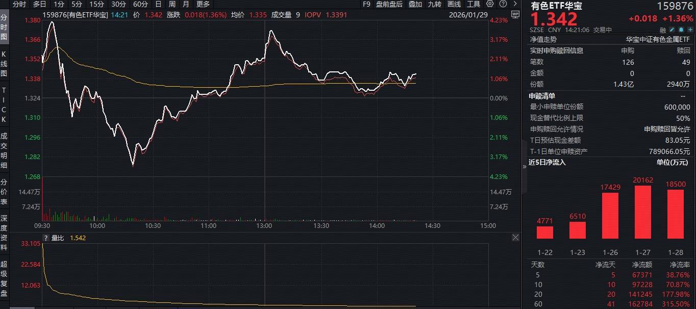 资金无惧行情波动,刚烈进场扫货!猖狂发稿,有色ETF华宝(159876)获资金及时净申购1.13亿份,此前20日连系吸金,系数狂揽超14亿元!