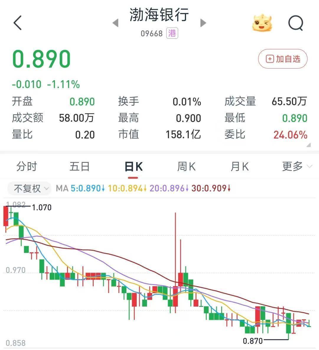 公开痛恨骄横,渤海银行此前曾经暴深远合规问题。本年1月23日,国度金融监督科罚总局江西监管局行政处罚信息公开表骄横,因非法披发贷款、贷款科罚不到位,渤海银行股份有限公司南昌分行被罚金75万元,干系职守东谈主被赐与教授并罚金。2025年,据不透顶统计,渤海银行收到了共14张监管罚单,触及13座城市的分支行,统共罚没金额超700万元。对此,读创财经曾有报谈(https://appdetail.netwin.cn/dc-h5s/dc_new/newdetail?id=s697442a4e4b0da3882d40406)。二级市集上,渤海银行2月6日收盘报0.89港元/股,跌1.11%,仍在“仙股”之列,最新总市值为158.1亿港元。
