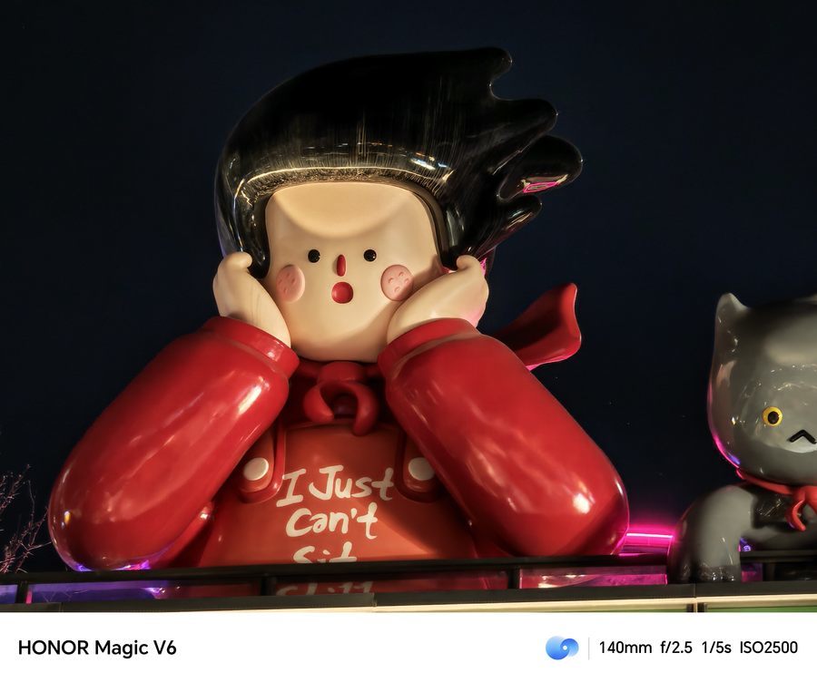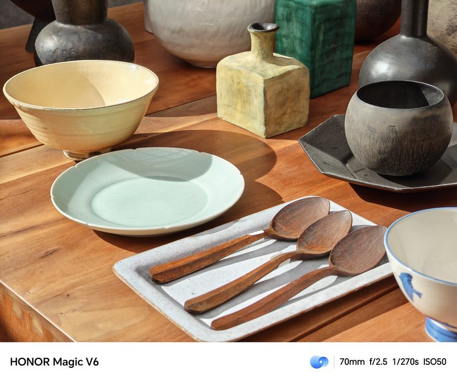 影像方面,荣耀Magic V6也莫得因为折叠屏样式而协调,搭载5000万像素广角(f/1.6光圈+OIS)+5000万像素超广角(f/2.2 光圈)+6400 万像素潜望式长焦(f/2.5光圈 +OIS)的全焦段旗舰配置,还有激光对焦与后置色温传感器加持,全场景拍摄皆能打。