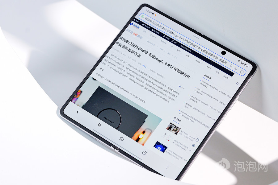 刚拿到这台雪域白版块的荣耀Magic V6,我的第 一感受即是它轻得不像折叠屏,219g的整机分量不仅甩开了折叠屏的沉静标签,甚而比不少直板旗舰还要微弱,单手抓持毫无坠手感,泛泛操作松驰无压力,外出佩戴随处随时皆能掏出来办公。